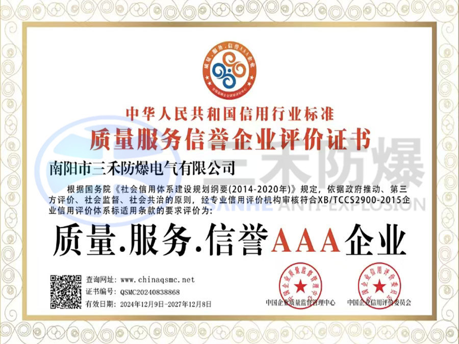 質(zhì)量服務(wù)信譽(yù)企業(yè)評價(jià)證書