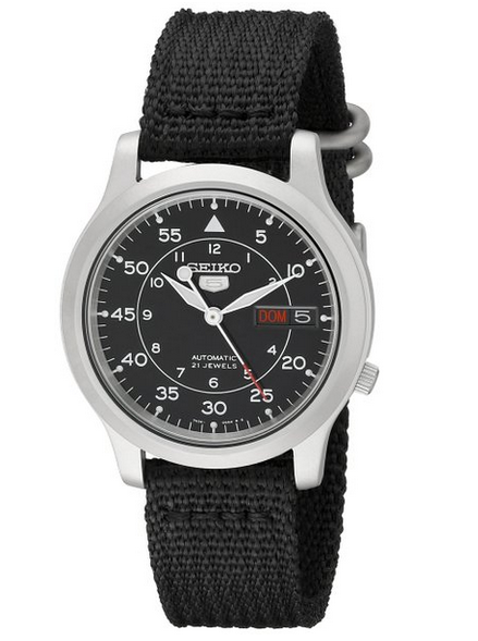 �(yōu)惠力�:此款Seiko精工SNK809男士機械腕表,采用內(nèi)�21石自動機械機芯,使用強化抗磨玻璃鏡面、不銹鋼表殼,夜光顯示時�(biāo)、指��3點鐘方向是日�、星期顯示窗�,日�30米防�,采用了黑色帆布表帶,表盤設(shè)計簡�,整體風(fēng)格非常適合年輕人佩戴?,F(xiàn)特價$56.54,約378��