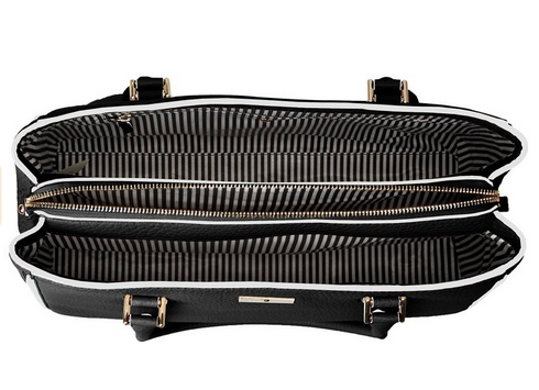 �(yōu)惠力�:kate spade Prospect Place Phila 女士托特�,是2016春夏新款!采用精致的荔枝紋牛皮材�(zhì),硬挺有�;經(jīng)典托特包�,暗扣開�,內(nèi)部設(shè)�(jì)有拉鏈貼袋,外部尺寸�38*15*25cm,可手提可肩�;全黑造型白色鑲邊,簡(jiǎn)約時(shí)尚又不顯沉悶,通勤日常都適�。原�(jià)$398,現(xiàn)黑色款特�(jià)$196.89,約1317元�