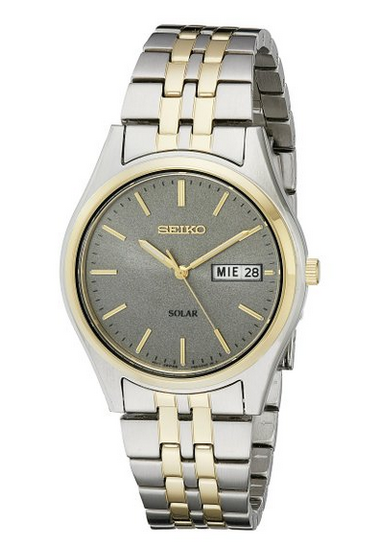 �(yōu)惠力�:此款Seiko精工SNE042男士光動(dòng)能石英手�,內(nèi)置日本光�(dòng)能石英機(jī)�,利用自然光供能,無需電池,節(jié)能環(huán)�,采用金銀配色不銹鋼表殼表鏈設(shè)�(jì),防刮耐磨礦物玻璃表鏡下為灰色表盤,表盤鑲有金色刻度和指針�3�(diǎn)鐘方�?yàn)槿諝v顯示�,表盤直�37mm,防水深�30m。原�(jià)$205,現(xiàn)特價(jià)$96.98,約647��