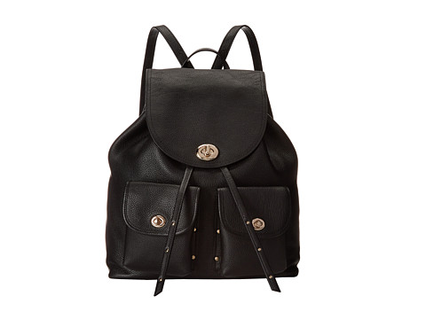 COACH Refined Pebble Leather Turnlock Tie Rucksack 黑色真皮背包 $249.99