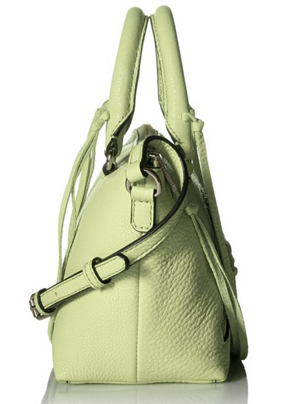優(yōu)惠力度:Rebecca Minkoff Micro-Moto Satchel 斜挎包,屬于2015年新款,采用荔枝紋真皮材質(zhì),柔軟細(xì)膩,包身正面兩個(gè)斜拉鏈口袋,拉鏈頭、手提帶的流蘇設(shè)計(jì),妥妥機(jī)車(chē)風(fēng),充滿與眾不同的個(gè)性。包頂拉鏈開(kāi)合,印花襯里,內(nèi)置一個(gè)拉鏈口袋和3個(gè)插袋,尺寸約為20*16.5cm。原價(jià)$195.00,現(xiàn)Honey Dew色款特價(jià)$74.53,約497元。