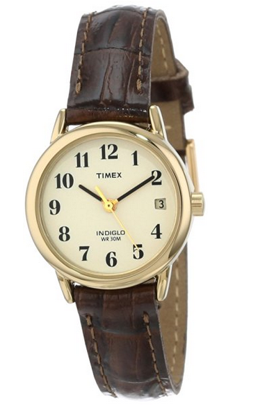 �(yōu)惠力�:不奢華,不夸�!這款Timex天美�(shí)T20071女士石英腕表,采用日本石英機(jī)芯,白色表盤搭配鍍金�(shí)�(biāo)和指�,礦物質(zhì)玻璃表鏡,INDIGLO夜光表盤,不銹鋼鍍金表殼,棕色細(xì)�(xì)的表�,精致的表盤,顯得手腕嬌小可�。表�25毫米,厚�8毫米�30米防水。原�(jià)$44.95,現(xiàn)特價(jià)$23.98,約160��