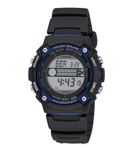 這款CASIO卡西歐WS210H-1AV男士戶外運(yùn)動表,美國制造,采用有數(shù)字顯示日本石英機(jī)芯,不銹鋼表殼加合成樹脂表帶,礦物水晶表鏡,表盤直徑42mm,表盤厚度13mm,光動能,LED照明,世界時間,潮汐和月亮圖形,倒數(shù)計時器,12/ 24小時格式,秒表,5個鬧鐘。就光動能這一點(diǎn),值不值自己想。不管是日常還是戶外活動都非常適用。